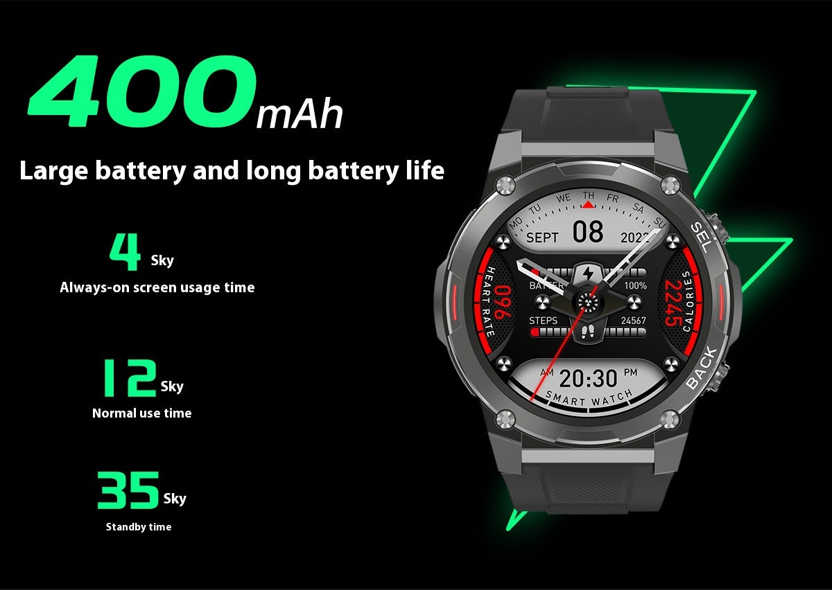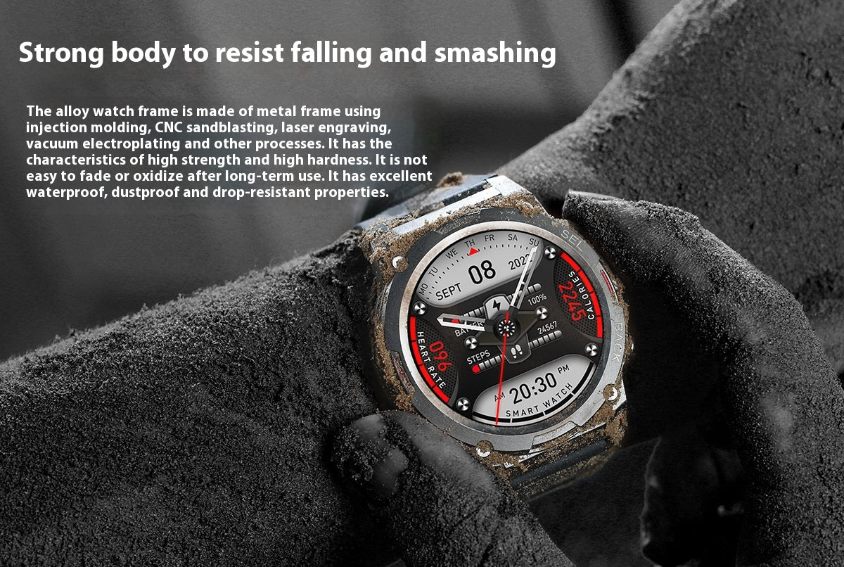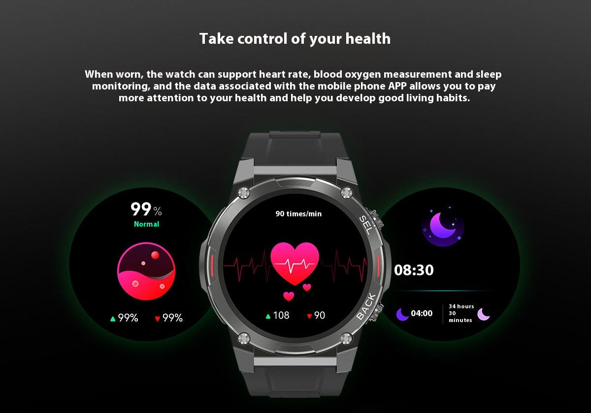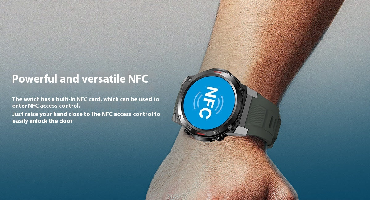 Este smartwatch de alto desempenho é o aliado ideal para quem leva um estilo de vida ativo, exigente e conectado. Com estrutura resistente em liga de zinco, funcionalidades completas de saúde e desporto, e tecnologia NFC integrada, adapta-se a qualquer ambiente — desde trilhos na montanha até à rotina urbana.