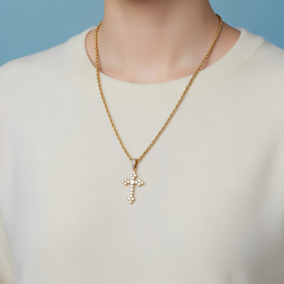 Combinando estilo vintage e sofisticação contemporânea, o Colar Cruz Retro com Zircónias é uma peça de destaque que transmite elegância e simbolismo. O pendente em forma de cruz, cravejado com zircónias AAA, confere um brilho intenso e luxuoso, enquanto o banho de ouro adiciona requinte e durabilidade. Disponível em prateado, dourado ou rose gold, este colar adapta-se a qualquer look, sendo ideal para quem procura uma joia unissexo que combine espiritualidade, estilo e presença marcante.