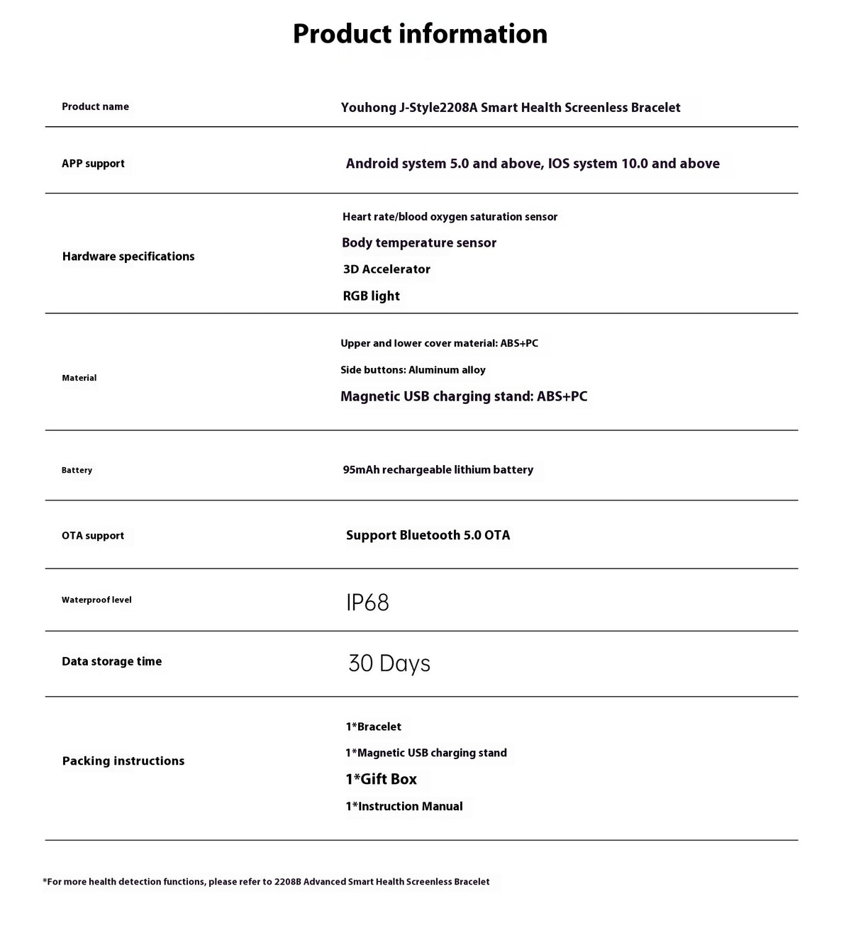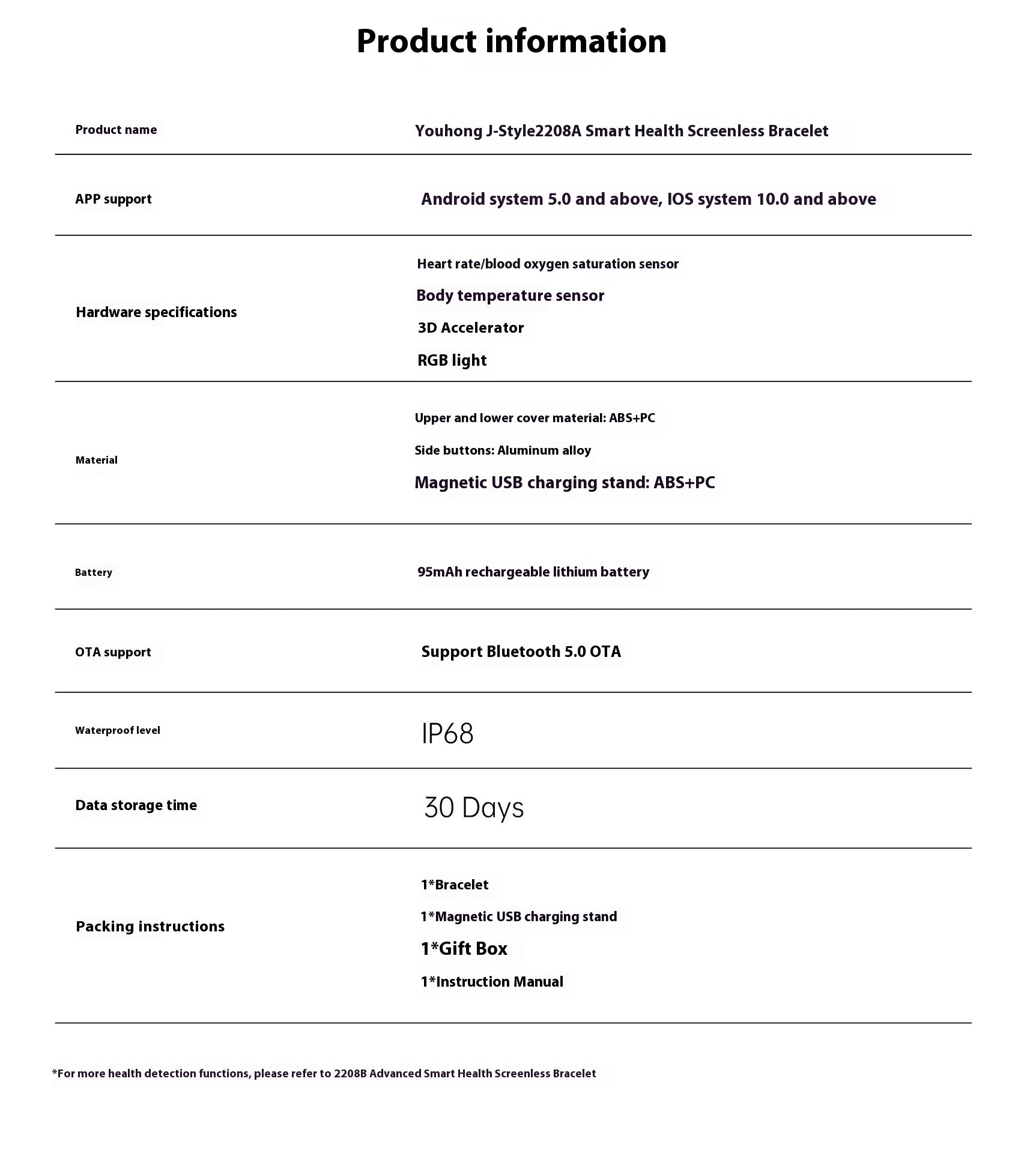 Nome do Produto: J-Style 2208A – Pulseira Inteligente de Saúde sem Ecrã