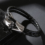 Esta pulseira de couro e aço inoxidável tem um design único de caveira. Feita com materiais duráveis e disponível em vários tamanhos, ela é uma ótima opção para quem busca estilo e resistência. Com uma largura de 5 a 14 mm, ela se adapta perfeitamente ao pulso.