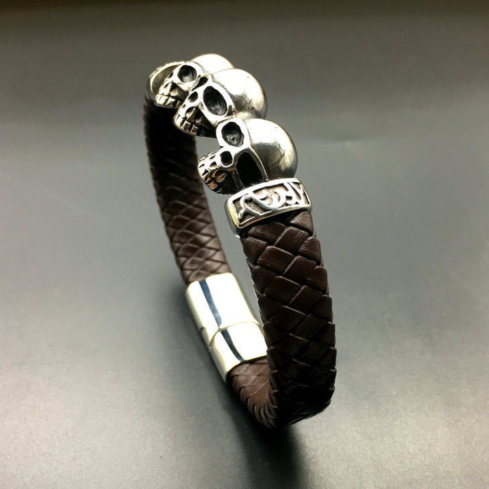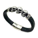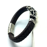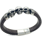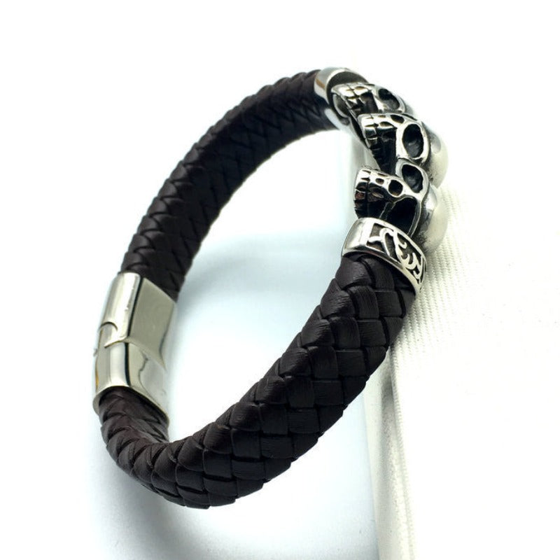 Pulseira Skull de Couro e Aço Titânio