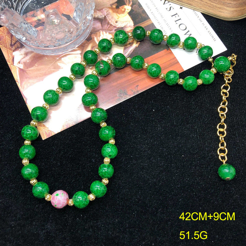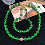 Acompanhe seu visual com o colar, pulseira e brincos em vidro verde com acabamento em liga de metal. Confortável e sofisticado, o colar possui tamanho ajustável de 42 a 51 cm, enquanto a pulseira mede 19 a 20 cm. Os brincos, com 10*38 mm, complementam o conjunto de duas peças.