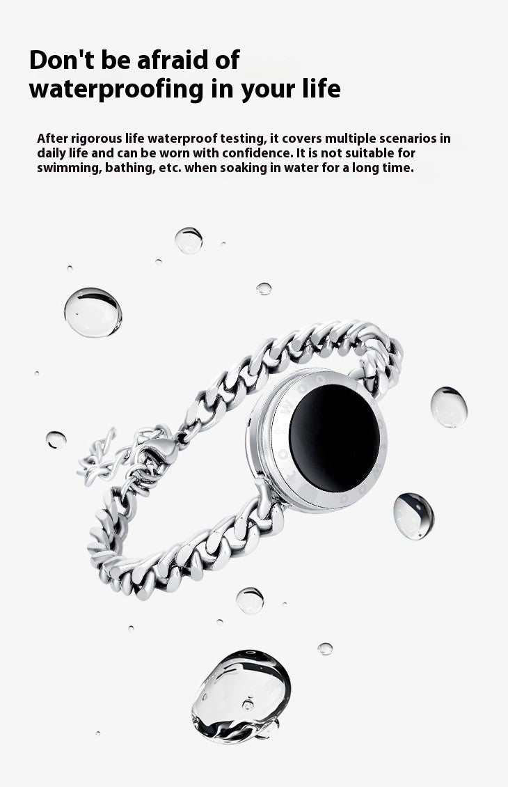 Produzida em aço inoxidável 316L, combina tecnologia, conforto e durabilidade. O tamanho ajustável entre 16 cm e 26 cm adapta-se facilmente a qualquer pulso. Recarregável e personalizável, transforma um gesto simples numa experiência emocional elegante.