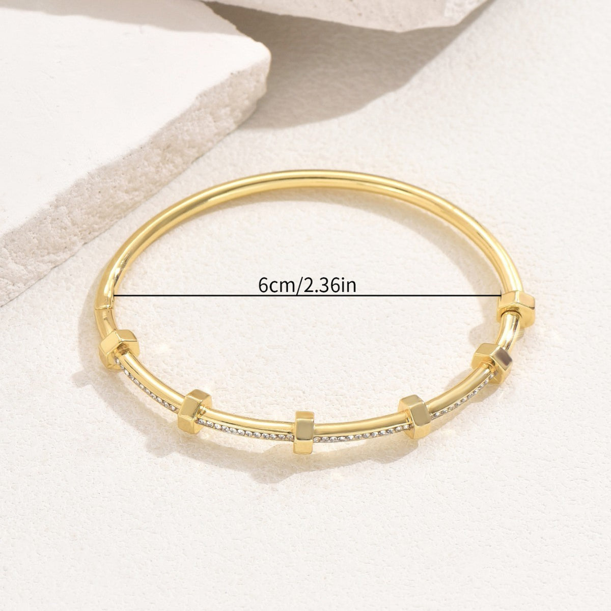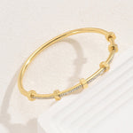 A Pulseira Bangle com Zircónias é a escolha perfeita para quem procura um acessório que una delicadeza e brilho sofisticado. O seu design minimalista em tom dourado é realçado pelo esplendor das zircónias, que captam a luz com elegância e acrescentam um toque de glamour discreto ao pulso. Versátil e intemporal, esta pulseira adapta-se facilmente a diferentes ocasiões, desde o uso diário até eventos especiais, tornando-se um complemento indispensável para realçar o estilo pessoal com requinte.