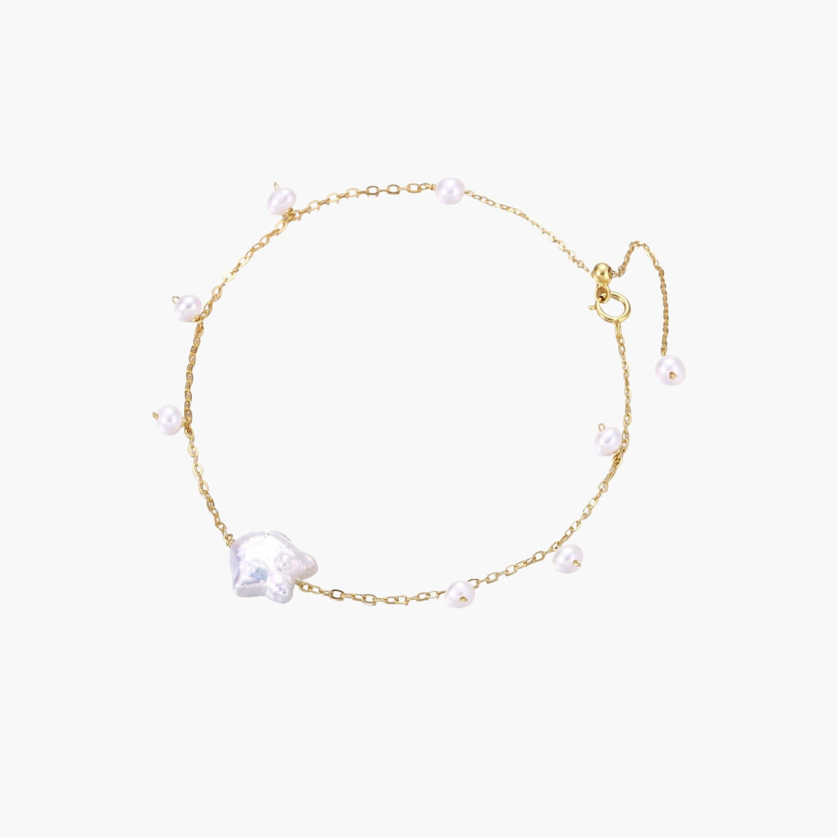 A pérola barroca combina com delicado ouro vermeil nesta pulseira de poder subtil que nutre a energia feminina.