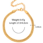 Desfrute do estilo elegante e durável com a nossa Pulseira em Aço Inoxidável dourada. Feita de material resistente de 0,44 cm de largura, ela é ajustável de 17 a 23 cm, se adaptando perfeitamente ao seu pulso. Garanta um visual sofisticado e sofisticado com esta pulseira de alta qualidade.