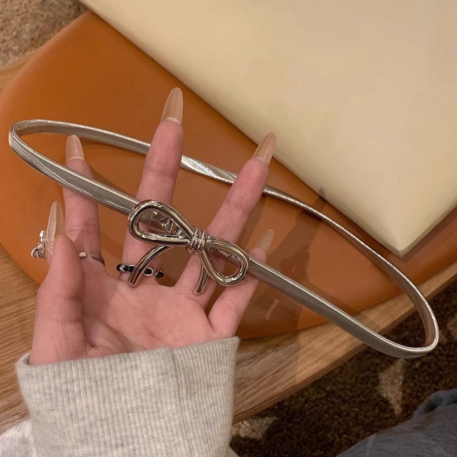Este elegante Cinto Laço para Mulher em metal prateado possui uma largura fina de 0,8 cm e um comprimento de 115 cm. Com um laço delicado, é perfeito para finalizar qualquer visual feminino. Adicione um toque de estilo à sua roupa com este cinto versátil e moderno.