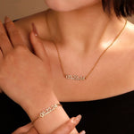 O Colar e Pulseira Personalizáveis com Data Especial são peças exclusivas, perfeitas para eternizar momentos únicos da sua vida. Criados em aço inoxidável resistente e adornados com brilhantes zircónias, oferecem um design elegante e intemporal. A personalização da data torna este conjunto um presente cheio de significado, ideal para celebrar aniversários, conquistas ou momentos marcantes. Versáteis e sofisticados, podem ser usados no dia a dia ou em ocasiões especiais, transmitindo sempre estilo e simbolismo.