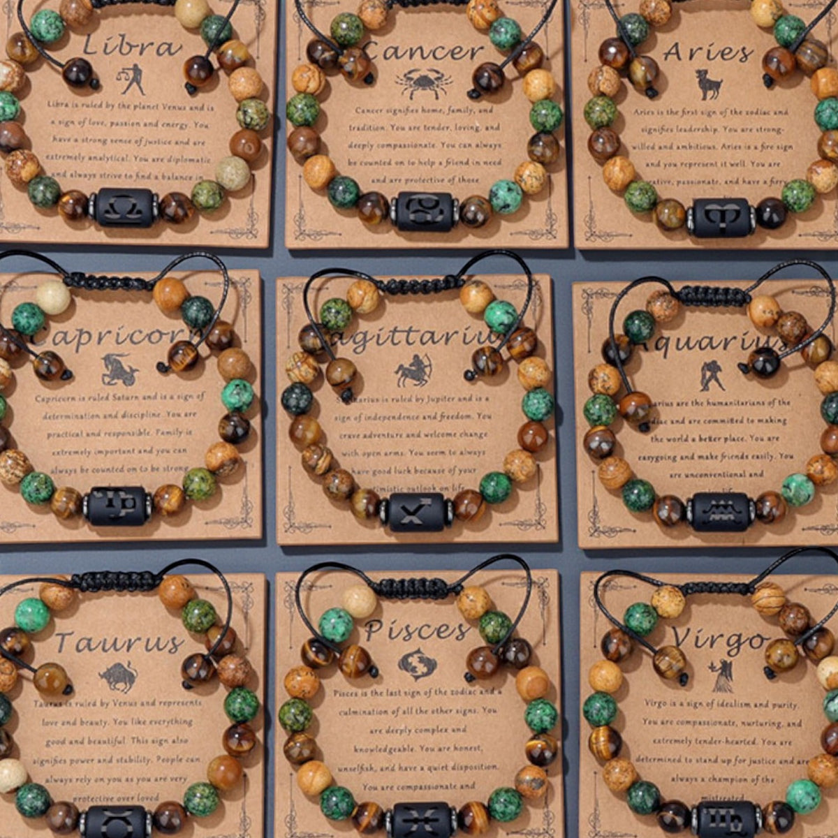 Eleve o seu estilo com a nossa Pulseira Zodíaco em Pedra Natural, uma peça que combina elegância e significado pessoal. Confeccionada com pedras naturais de ágata e corda resistente, esta pulseira simboliza a energia do seu signo, oferecendo proteção e um toque de sofisticação ao seu visual. Ajustável, garante conforto e versatilidade para qualquer ocasião.