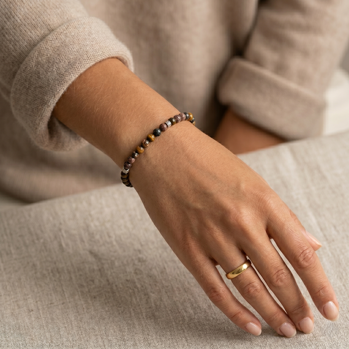 Equilibrada e cheia de significado, a Pulseira 7 Chakras combina pedras naturais em diferentes cores, representando os sete centros de energia do corpo. Com um design simples e harmonioso, é ideal para quem procura um acessório com simbolismo espiritual aliado a um estilo moderno e discreto.
