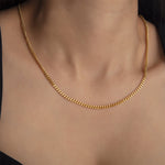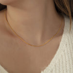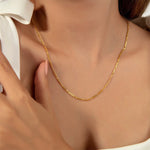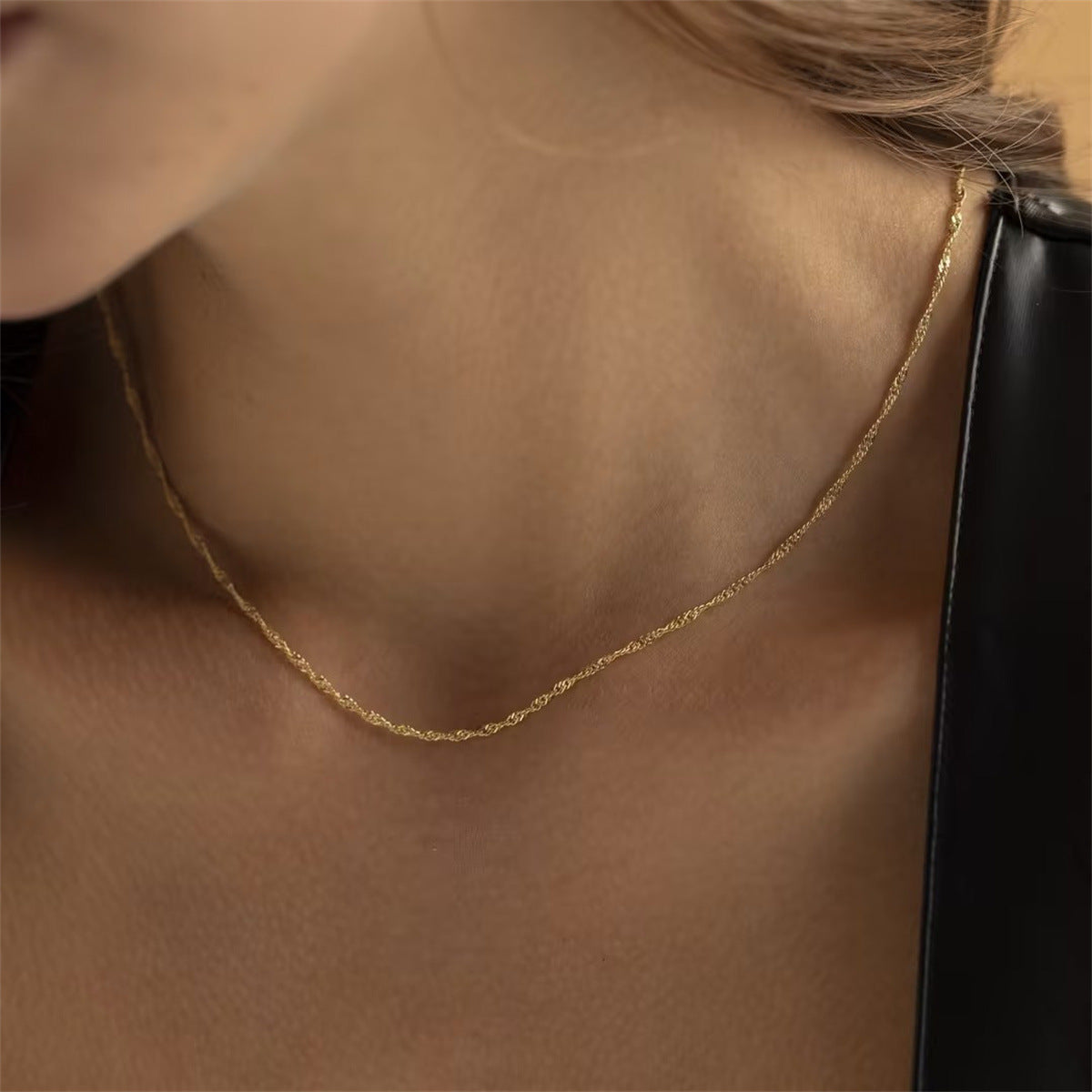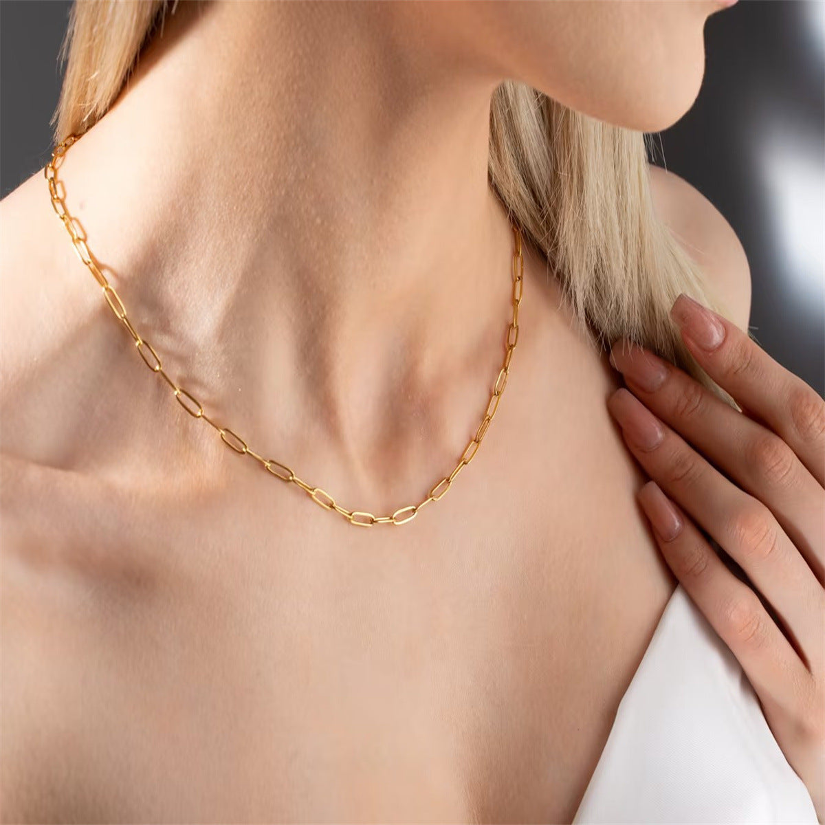 Elegante e versátil, este colar em aço inoxidável combina simplicidade moderna com um toque de sofisticação. O acabamento dourado adiciona brilho e presença, tornando-o perfeito para usar no dia-a-dia ou para complementar looks mais arranjados. Leve, resistente e pensado para durar, adapta-se facilmente a diferentes estilos, garantindo sempre um visual refinado.
