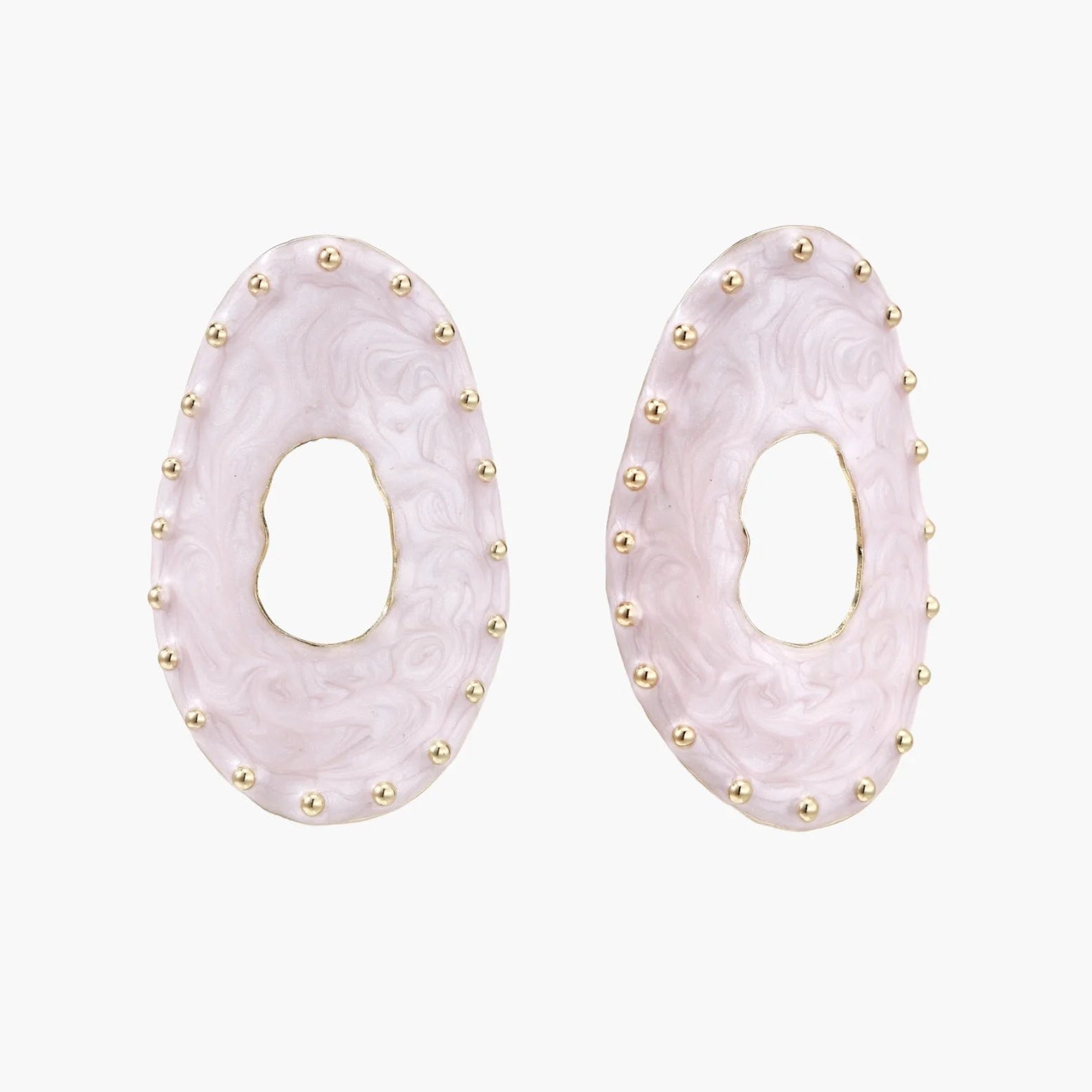 O esmalte suave em tons de lavanda encontra o calor do ouro banhado nestas argolas ovais dignas de galeria, elevando totalmente a tua energia criativa.