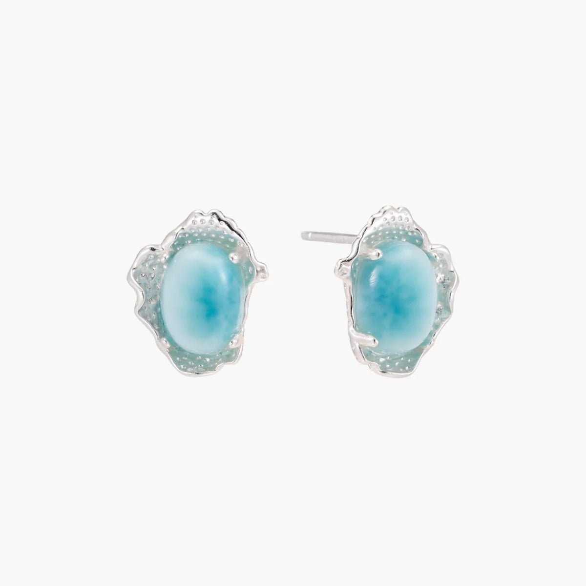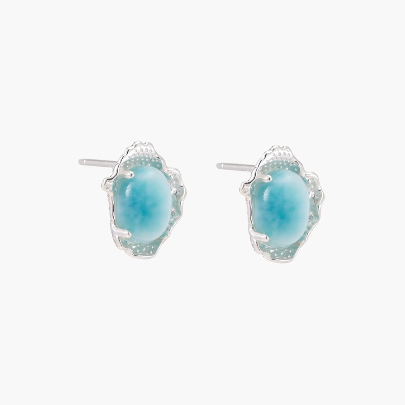 Raro larimar das Caraíbas, associado à energia da deusa do oceano, delicadamente cravado em prata de lei 925 banhada a ródio.