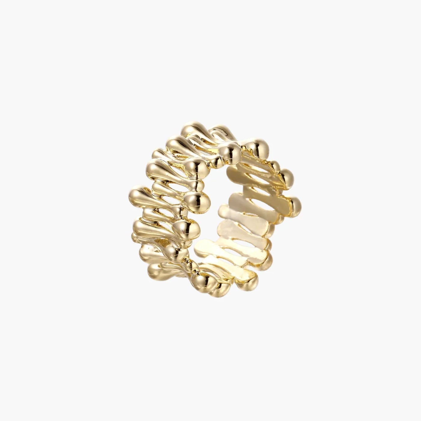 O eco-latão banhado a ouro branco oferece brilho refinado e luminoso, com toque suave e confortável. Desenvolvido com uma base metálica responsável, apresenta acabamento polido e premium, elevando o estilo diário ou de noite com facilidade e sofisticação.