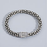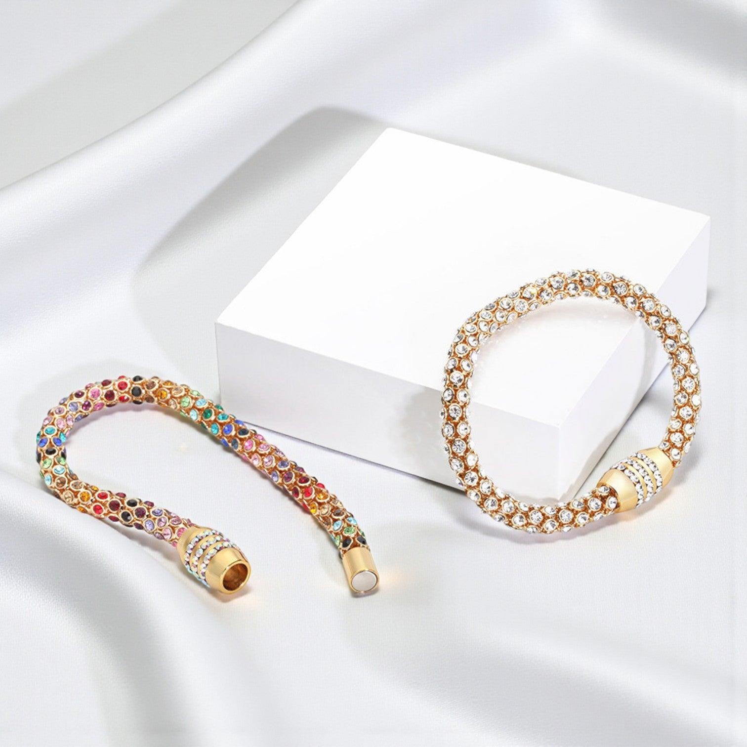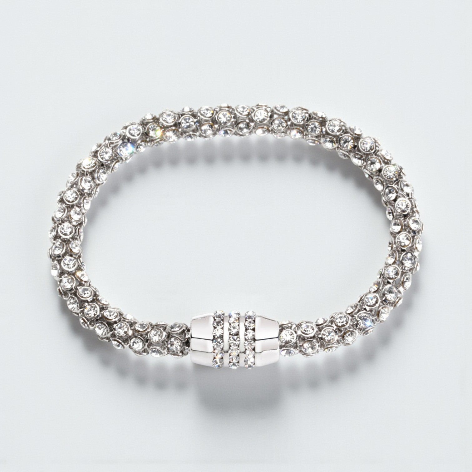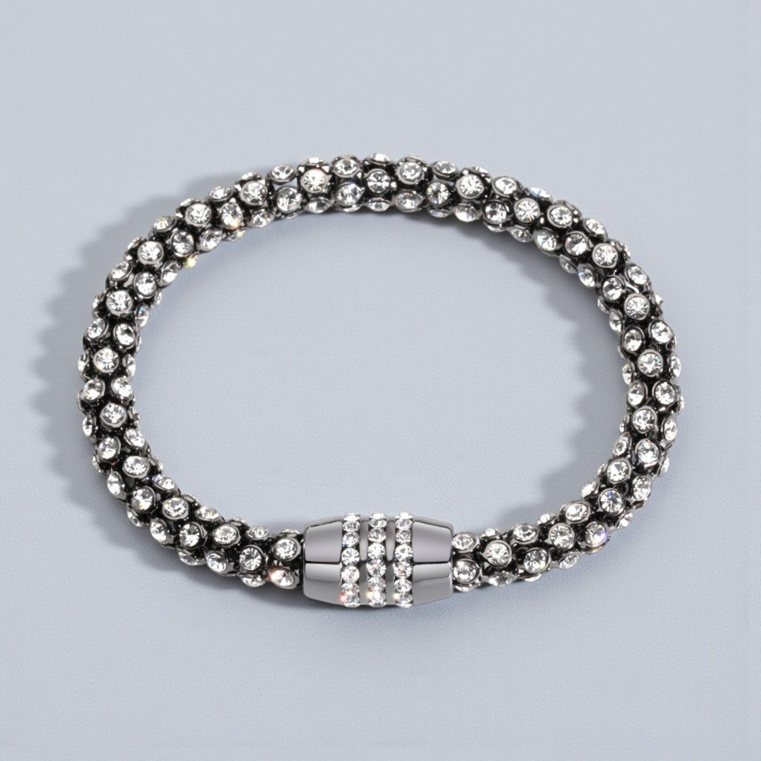 A Pulseira com Zircónias combina brilho, elegância e modernidade num design versátil que se adapta a qualquer ocasião. As suas zircónias reluzentes refletem a luz com intensidade, conferindo um toque sofisticado e distinto ao pulso. O fecho magnético prático e seguro garante conforto no uso diário, enquanto o acabamento refinado eleva o estilo com discrição e classe. Uma peça perfeita para complementar tanto looks formais como casuais, adicionando sempre um toque de luxo subtil.