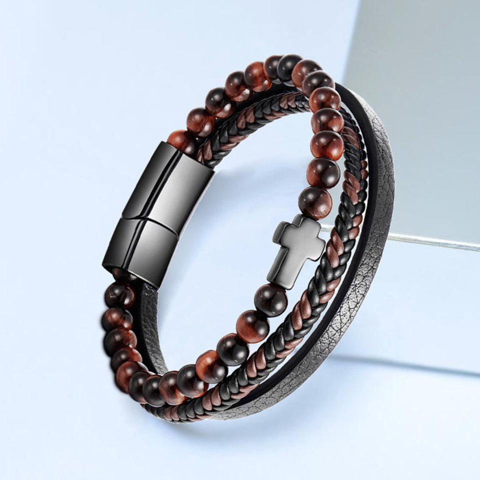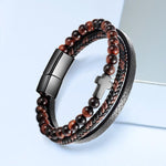 Inspirada na força dos elementos naturais e no estilo moderno, a Pulseira de Couro e Pedra Natural combina elegância rústica com simbolismo poderoso. Produzida com couro de alta qualidade e pedras naturais como Ágata, Olho de Tigre e Hematita, esta pulseira masculina transmite proteção, equilíbrio e sofisticação. O fecho magnético em aço titânio oferece praticidade e segurança, tornando-a ideal para o uso diário. Disponível em várias cores, é uma peça versátil e cheia de personalidade, perfeita para complementar qualquer look com um toque de autenticidade.