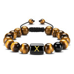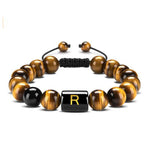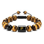 Eenheid prijs PerEsta pulseira é feita com corda resistente e pedras naturais de Olho de Tigre e Ágata, com uma letra em destaque. Ela mede 8 mm de largura e é ajustável de 16 a 26 cm. Adicione um toque pessoal ao seu estilo com este acessório único e durável.