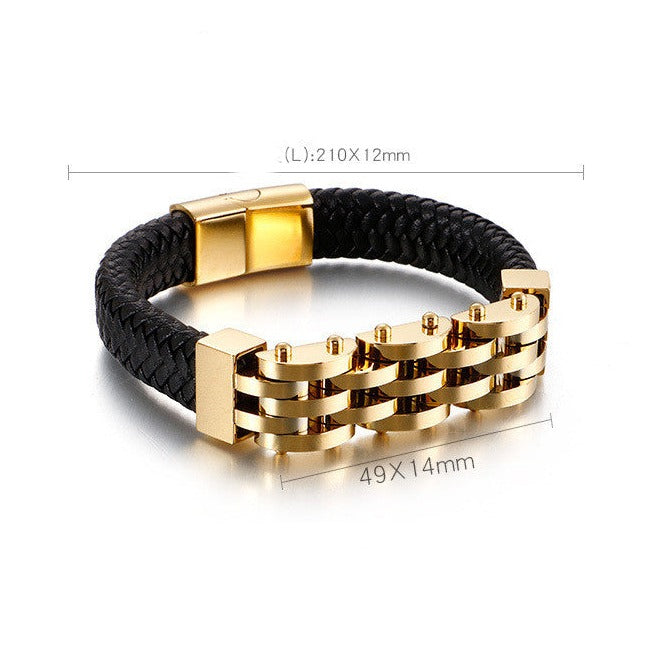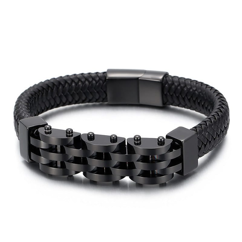 Esta pulseira de couro e aço inoxidável é a combinação perfeita de estilo e durabilidade. Feita com materiais de alta qualidade e disponível em várias cores e tamanho 20 - 21 cm, ela é a opção ideal para quem deseja adicionar um toque moderno ao seu visual. Com uma largura de 12-14 mm, é uma escolha elegante e sofisticada para qualquer ocasião.