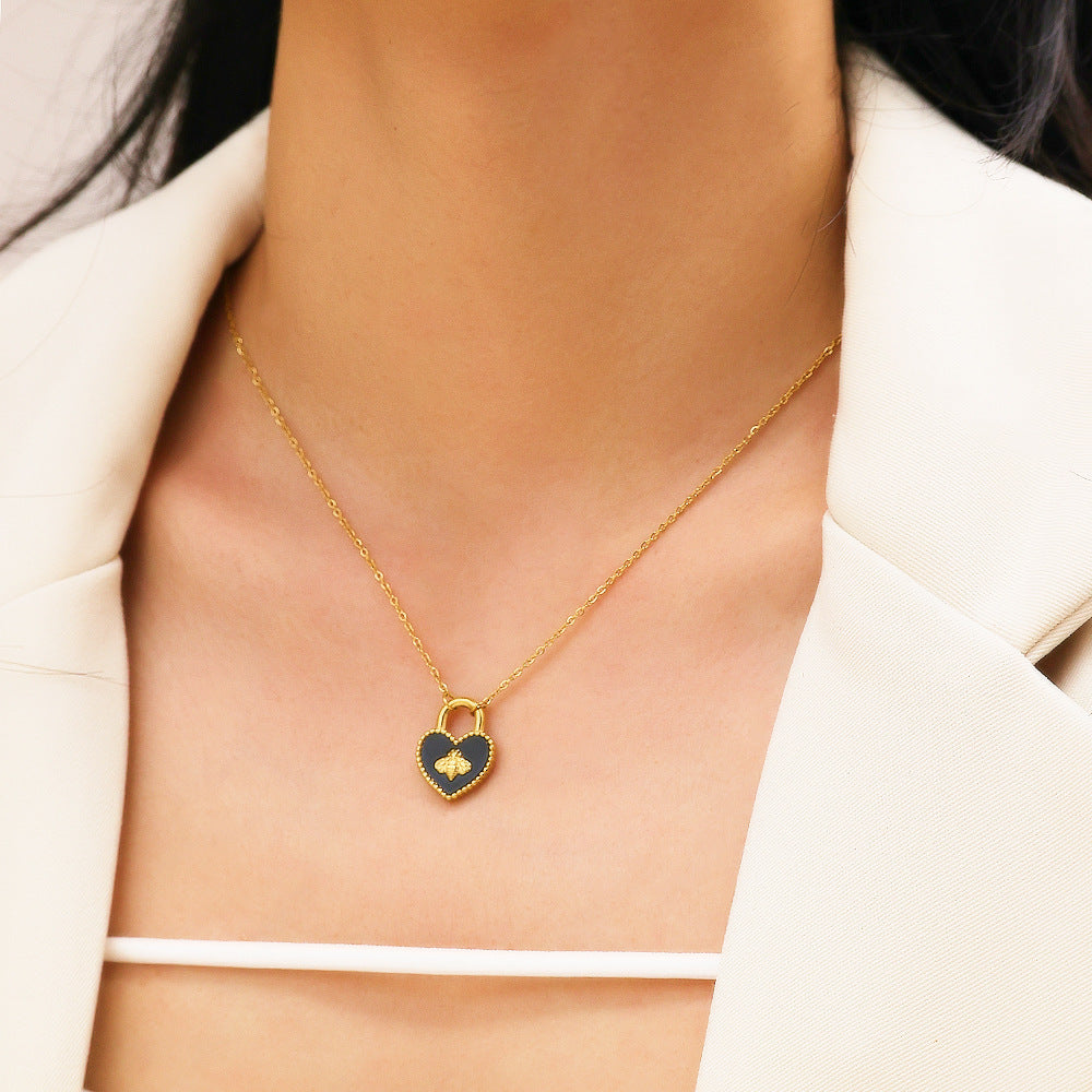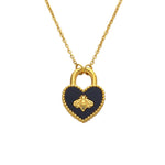 Este colar combina elegância moderna com simbolismo delicado. O pendente em forma de cadeado, adornado com uma abelha detalhada, representa segurança, dedicação e energia positiva. Com acabamento dourado e linhas harmoniosas, é a peça ideal para quem procura estilo com significado.