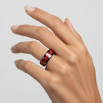 Marcante, moderno e cheio de personalidade, o Anel em Aço de Tungsténio destaca-se pelo contraste intenso entre o preto profundo e o vermelho vibrante. Esta combinação cria um visual contemporâneo e arrojado, perfeito para quem procura um acessório que una elegância, força e estilo.