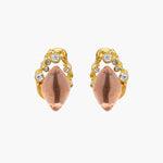 Brincos ornamentados de inspiração barroca, banhados a ouro, com liuli coral-rosa que transmite confiança e calor.