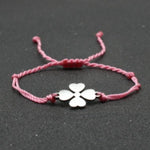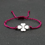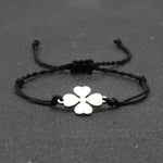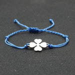 A Pulseira Trevo da Sorte está disponível em várias cores, sendo uma opção elegante para qualquer ocasião. Feita de corda resistente e aço inoxidável, é ajustável de 15 a 27 cm para maior conforto. Adicione um toque de elegância e sorte ao seu visual com esta pulseira.