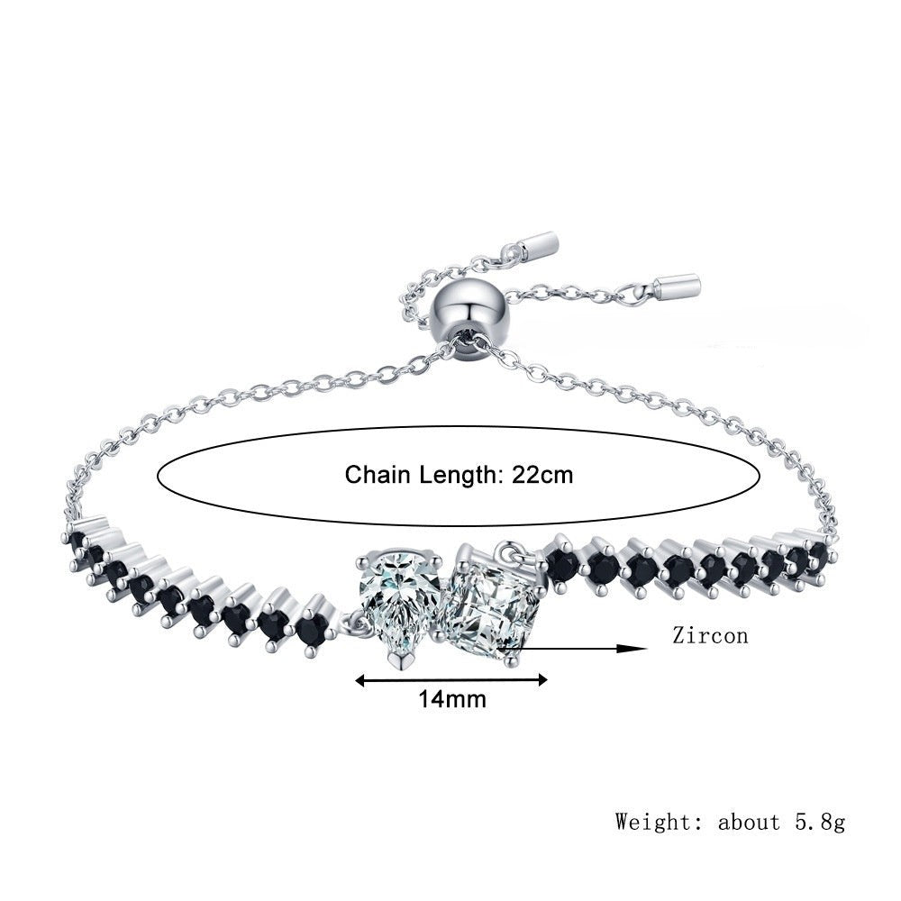 Com detalhes em zircónia, esta pulseira destaca-se pela sua elegância e sofisticação. O design prateado e o acabamento em liga de metal banhada a prata proporcionam um visual luminoso e de alta qualidade. O seu tamanho ajustável garante conforto e a capacidade de ser adaptada a diferentes tamanhos de pulso.