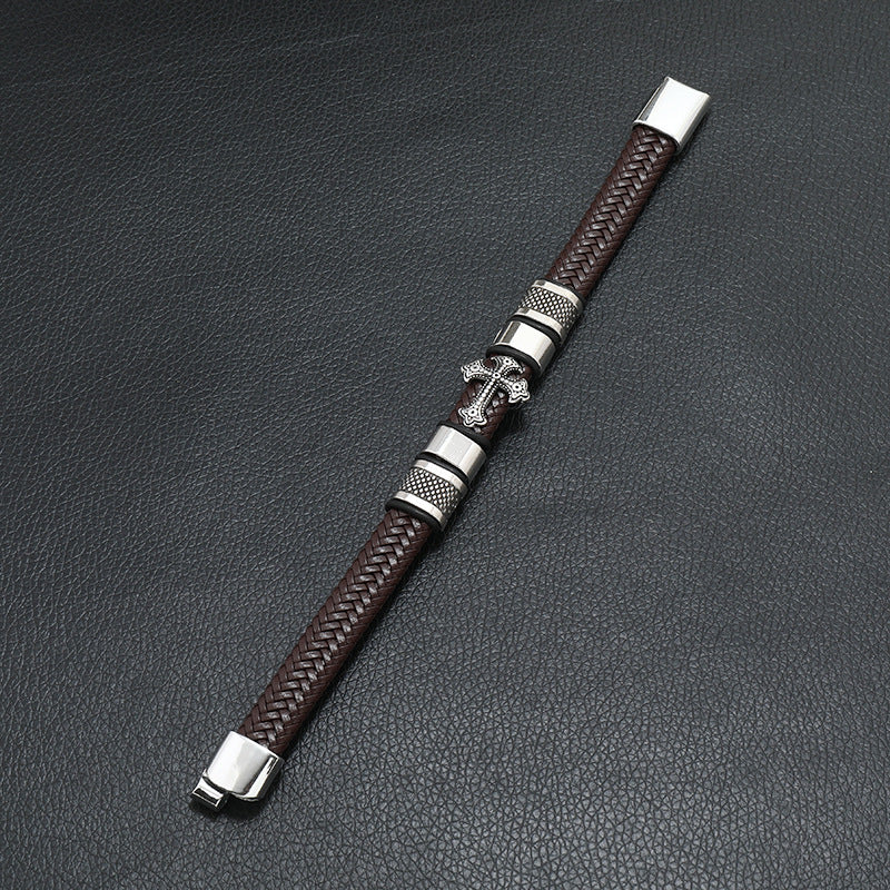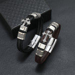 Pulseira de Couro e Aço Inoxidável