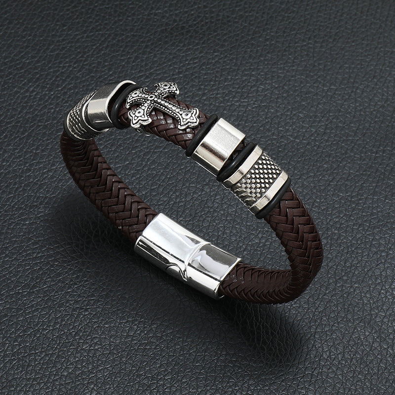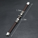 A pulseira de couro e aço inoxidável é o acessório ideal para completar qualquer look. Com fecho magnético e largura de 13 mm, ela tem um design moderno e elegante. Disponível em várias cores, é feita com couro de qualidade e resistente ao desgaste. Tamanho ajustável de 20 a 21 cm.