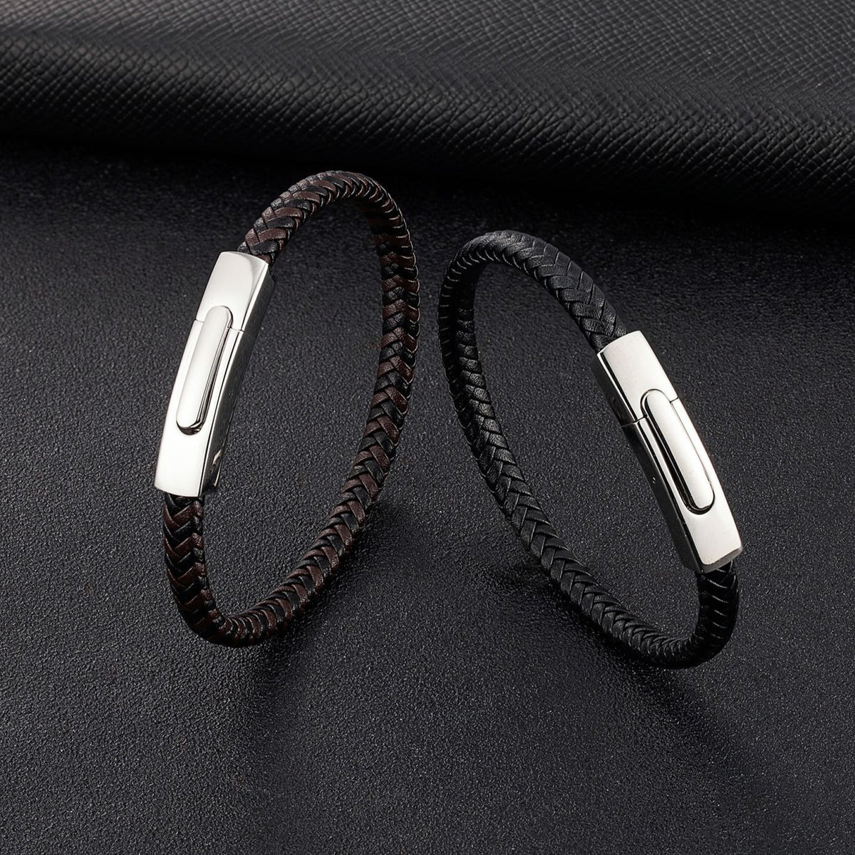 A pulseira de couro e aço inoxidável 316L é perfeita para agregar estilo e sofisticação ao seu visual. Com largura de 8mm e tamanho de 20-21 cm, ela é confortável e versátil para o seu dia a dia. Feita com materiais de alta qualidade, garante durabilidade e resistência. Escolha entre várias cores disponíveis e adicione um toque de elegância ao seu look.