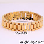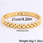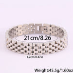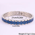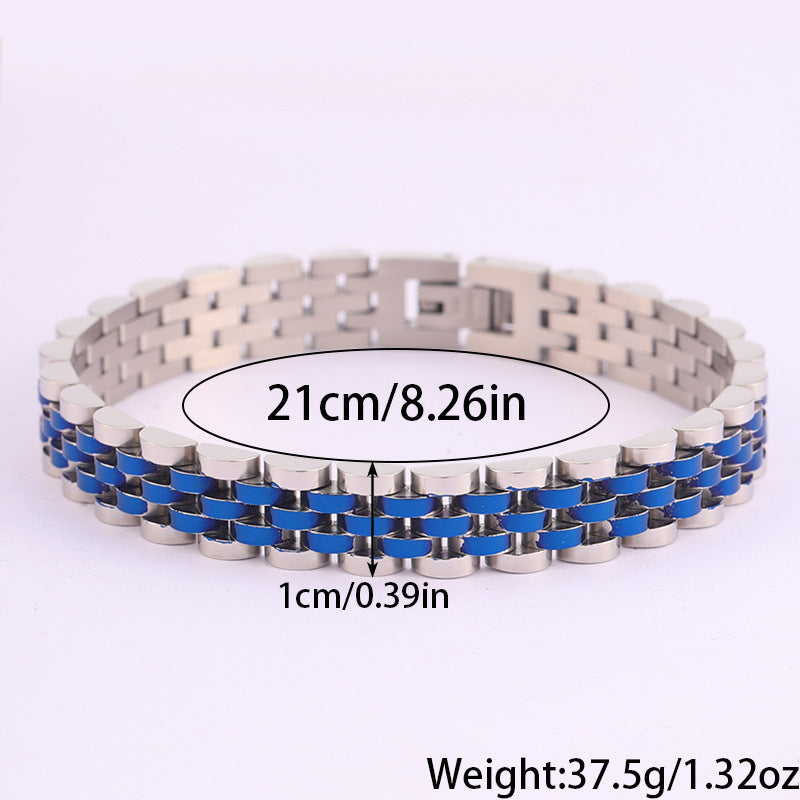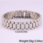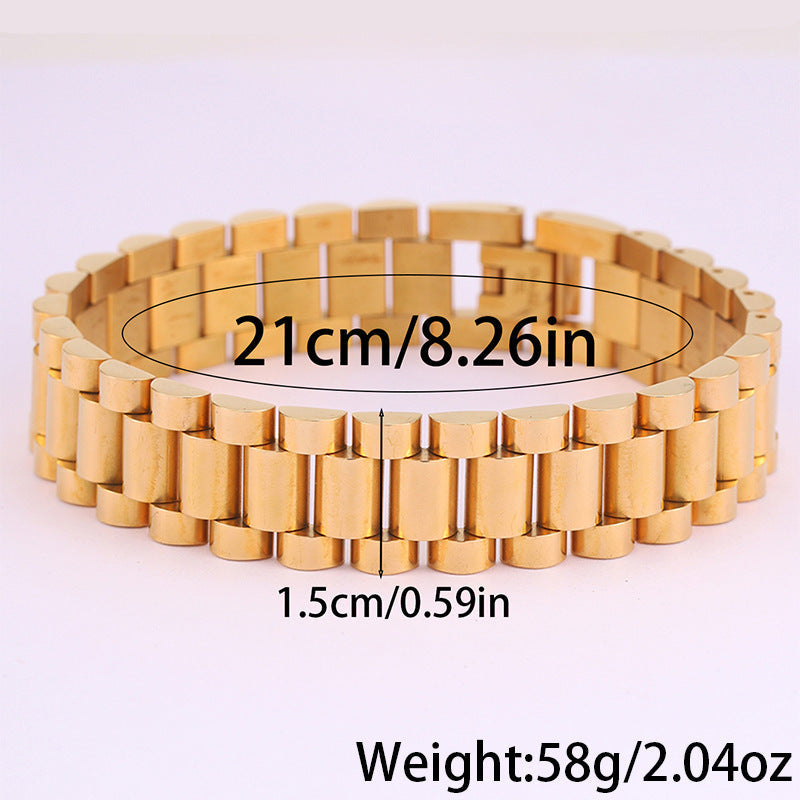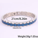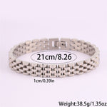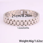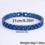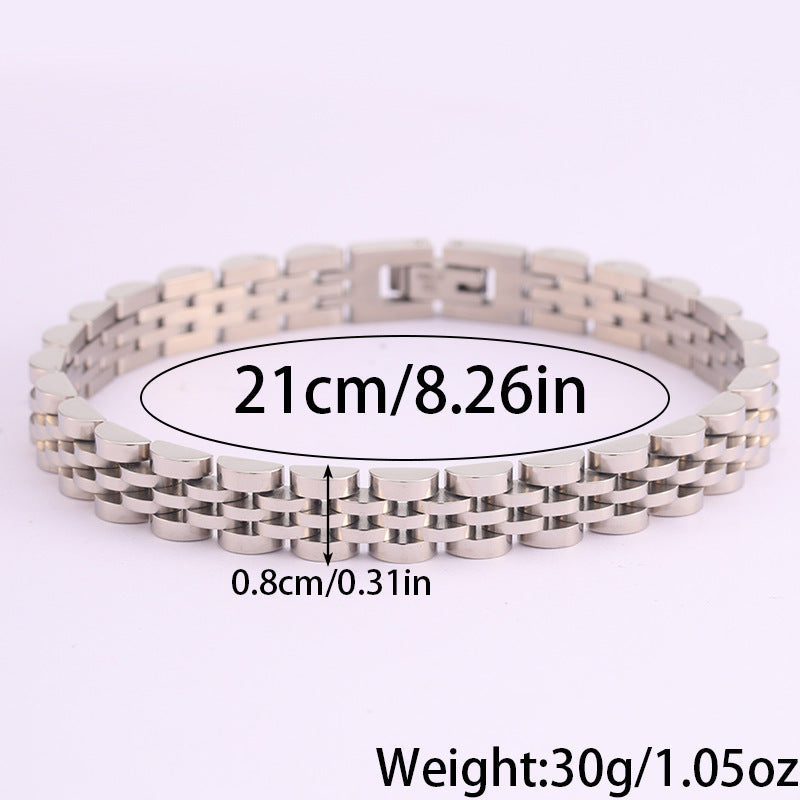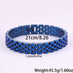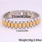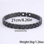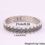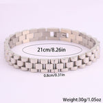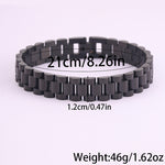 Com um design moderno e robusto, esta pulseira em aço inoxidável é a escolha ideal para quem aprecia acessórios duradouros com um toque sofisticado. O seu acabamento polido proporciona um visual elegante, enquanto a estrutura sólida transmite força e confiança.