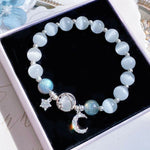 A pulseira Estrela e Lua feita com pedra natural opala, quartzo e liga de metal de oferece estilo e conexão com a natureza. Com uma variedade de cores disponíveis e tamanho de 17 a 20 cm, essa pulseira é perfeita para completar qualquer look. Adicione um toque místico e elegante ao seu estilo com a Pulseira Estrela e Lua.