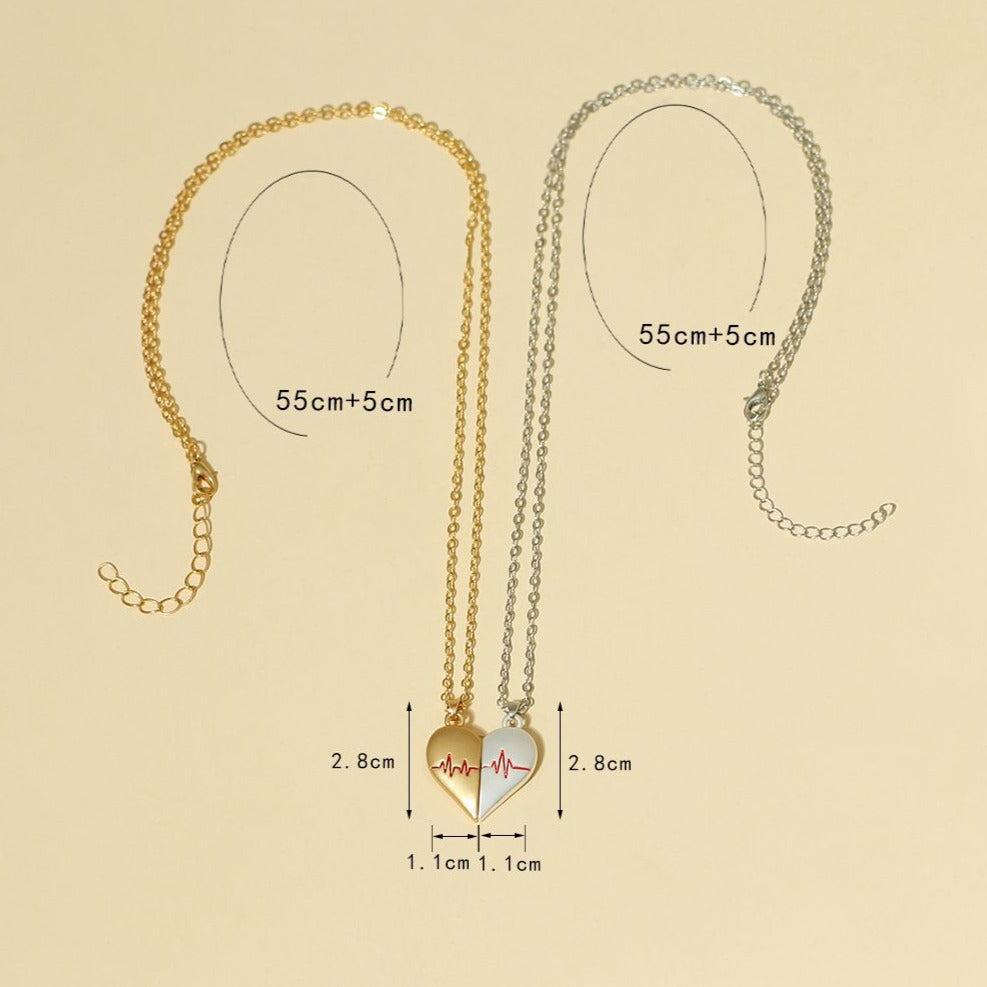 O Colar Heartbeat é um conjunto de 2 colares com pingente magnético, disponível em várias cores. Feito de liga de metal, o pingente possui 28*11/11 mm e a corrente tem tamanho de 55 - 60 cm. Adicione estilo e elegância ao seu look com este conjunto único!