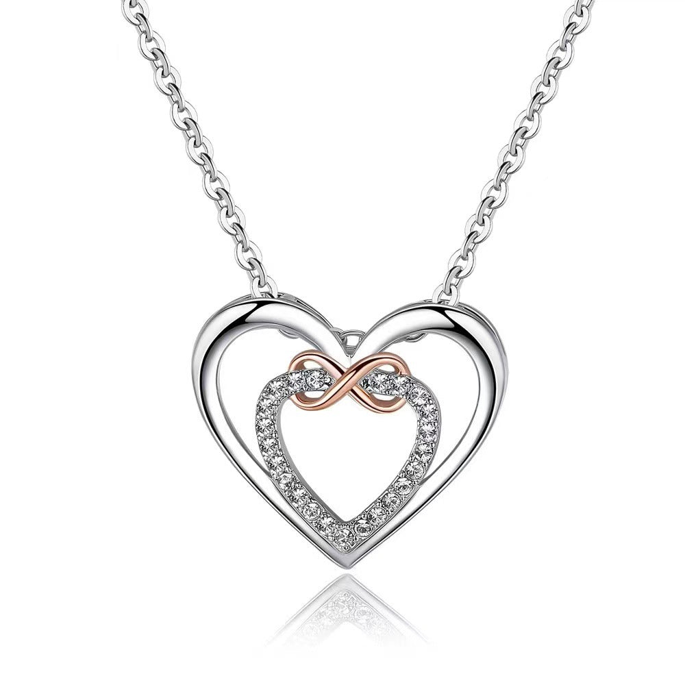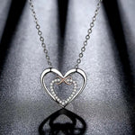 Este elegante colar de coração e infinito é perfeito para mostrar seu amor e carinho por alguém especial. Feito em liga de metal e decorado com cristais de strass, ele tem um brilho prateado encantador. Um presente significativo para demonstrar seu afeto duradouro.
