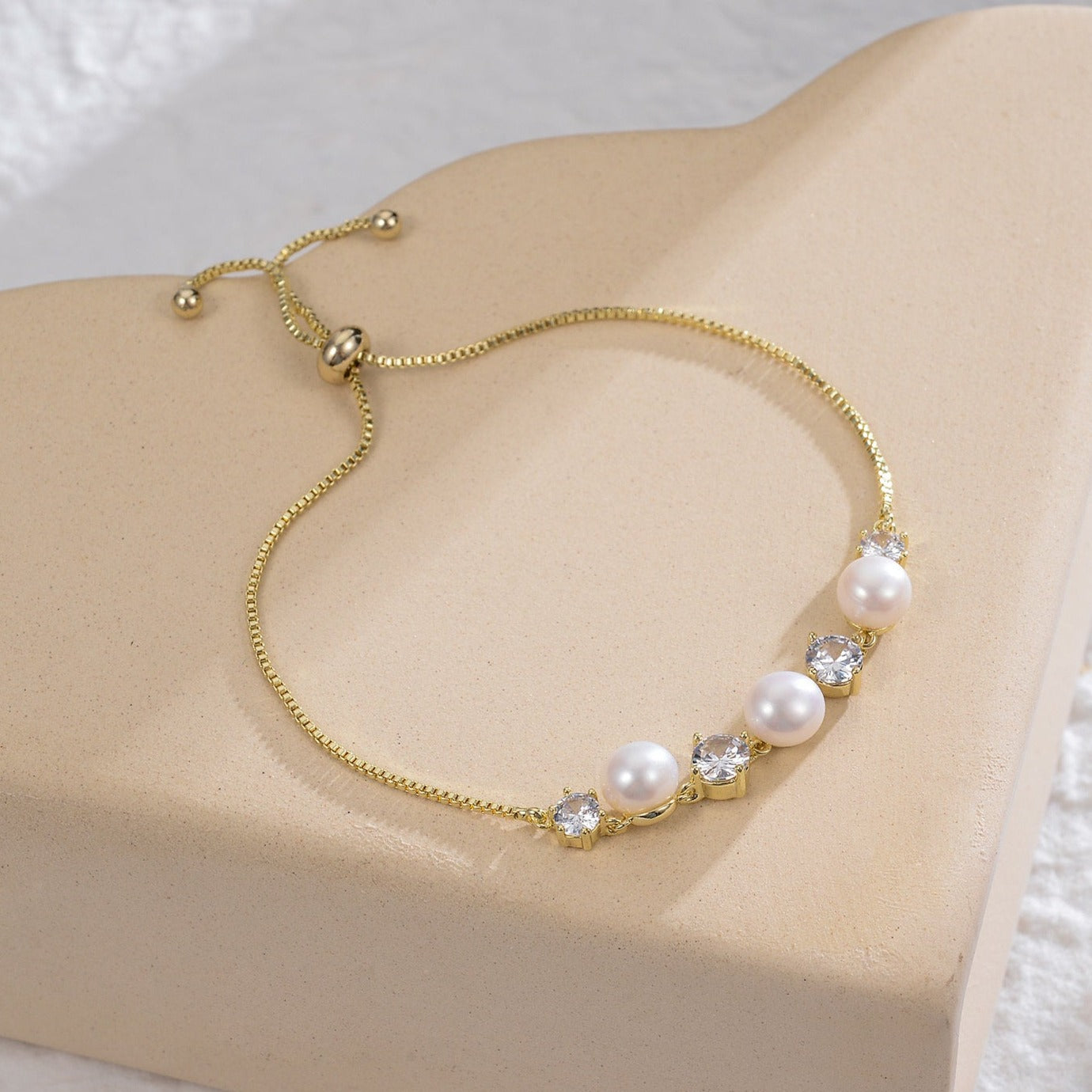 Combinando a beleza intemporal das pérolas, o brilho refinado da zircónia e o conforto da corda ajustável, esta pulseira é uma escolha delicada para qualquer ocasião – desde o dia a dia até momentos especiais.